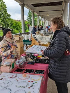 Our apartment is in the “old town” which is a very narrow strip of land between the bottom of the hill the Castle sits upon and the river. The rain had gone and the day was bright and sunny. Across from the apartment the daily market, every day except Sunday, was still in full swing. The market is huge, selling all sorts of fresh produce, flowers by the truckload, clothing, hats, honey and, of course, there was the odd souvenir stall here and there. LOL. On Friday’s vendors set up vans that cook all sorts of local meats – but only on Fridays. We also found a vending machine from which one could get fresh milk – BYO bottle or buy an empty one from the machine and then fill it. Kerry is always eye-ing off the jewellery stalls in case something strikes her fancy. At one such stall something did so, with the help of the stall owner who also created the pieces, she bought a couple of pairs of earrings and a matching brooch.